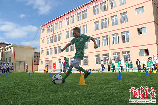 体育老师王洪权说,今后,再也不用在水泥地上带学生们踢球了,过去,因为没有足球场,学校甚至开不出一堂真正意义上的足球课。现在,学排球出身的王洪权正在努力转向一名足球老师,他希望能带着这群高原上的藏族孩子踢出点名堂。