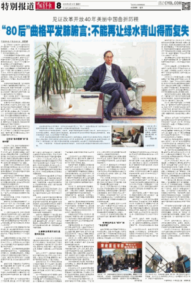 “80后”曲格平发肺腑言:不能再让绿水青山得而复失