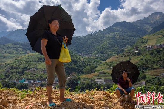 云南省怒江傈僳族自治州泸水市六库水电站附近,李玉珍和弟弟李玉民在怒江边的公路旁。