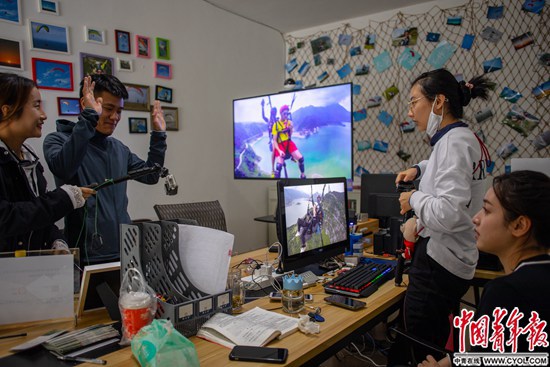 四川省都江堰市龙池镇查关村,刚从山顶玩滑翔伞回来的年轻人聚在一起聊天。如今,这里有包括滑翔伞俱乐部在内的各种旅游项目。