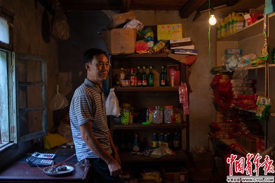四川省凉山彝族自治州冕宁县里庄镇,62岁的代兴民在雅砻江边自家的小卖部里。小卖部紧挨江边吊桥,上游是锦屏水电站。