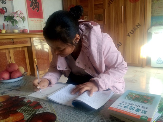 王根花在学习果树种植技术