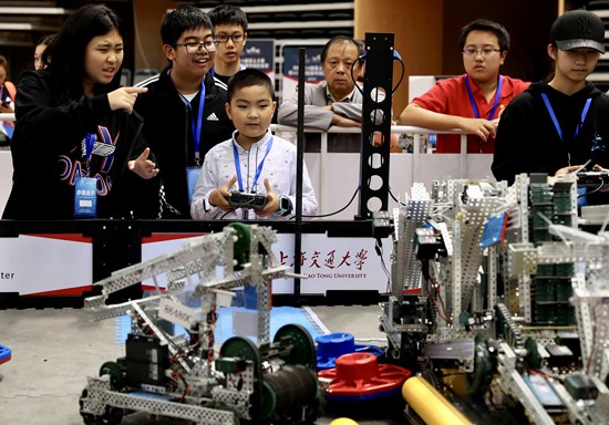 11月3日,2018中国VEX机器人大赛暨VEX世锦赛中国选拔赛在上海交通大学开幕。新华社记者 刘颖/摄