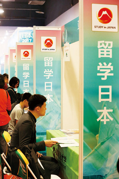 2017年10月21日,北京中国国际教育展上,学生在日本留学展台前咨询。视觉中国供图