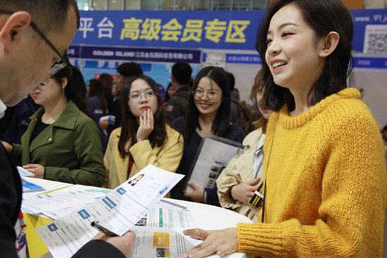 11月3日,江苏省南京市,江苏省暨南京市2019届普通高校毕业生公益供需洽谈会在南京国际博览中心举行。本届洽谈会上,1500多家企业提供了近4.8万个岗位,短短一上午的时间,有1.4万余名求职者入场与用人单位对接。视觉中国供图