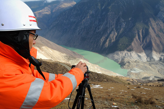 11月12日,西藏昌都市消防队员在观察泄流情况。记者12日从西藏江达县金沙江堰塞湖前线指挥部了解到,当日10时50分,金沙江白格堰塞湖水位超过堰塞体人工泄流槽,开始泄流。新华社记者 坚赞/摄