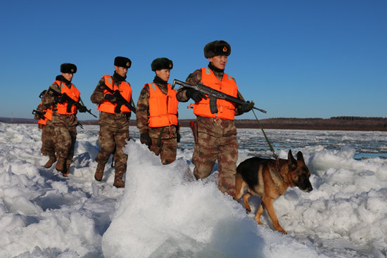 11月13日,又到了界江流冰期,黑龙江省黑河市江面气温降至零下8摄氏度,为确保辖区群众和外来游客的安全,北部战区边防某旅“黑河好八连”官兵,认真巡查辖区边界一线。视觉中国供图