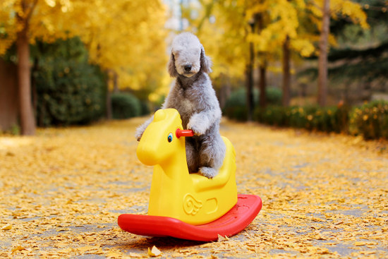 11月10日,一只贝灵顿梗宠物犬在北京八里庄社区的银杏道上拍写真。近日,北京市园林绿化局下发《关于进一步加强林地绿地地被植物管理工作的通知》,其中要求全市林地绿地、公园暂缓清扫彩叶树种的落叶,并通过喷水加湿等措施,积极营造园林绿化的金秋景观,为市民亲近自然提供更大的便利。李锋/摄