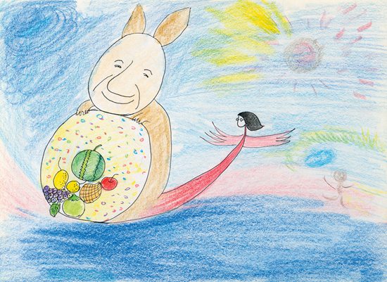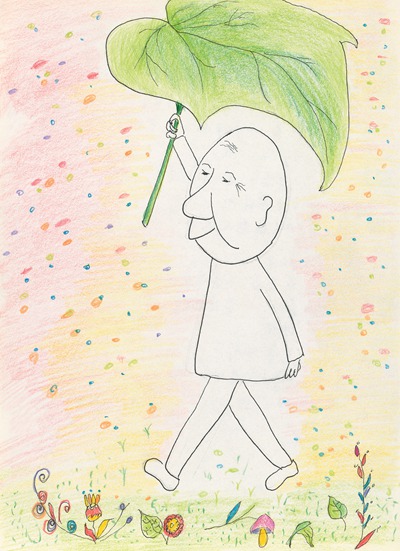 她把发脾气脱衣服的老爸画成童话世界里体验新装的皇帝,把玩布料和绳子的老爸画成一只猫。老爸大吼大叫时,她画一头熊——睡觉时弯着背、靠着墙,上厕所时尿在裤子里满地走的熊。