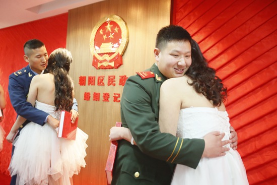 来登记的人千姿百态,有的年纪不轻,“看起来像搞科研的”,不善言辞,肢体语言不丰富,“在稳重和冷漠之间”。有位军人在颁证仪式上哭了半天,两个人对视,握着手,刷刷地流眼泪,“真跟断了线的珠子似的”,“可能聚少离多,真的很不容易。”