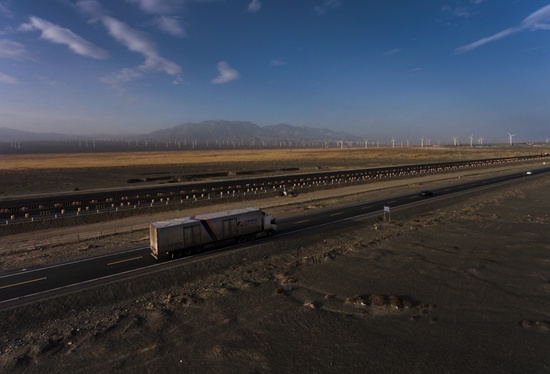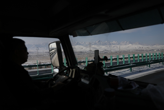 一路上,两人经历了南方的雨和北方的雪。车入陕西,开始下雪,路面结冰;过甘肃、新疆,又要面对茫茫戈壁和荒漠,每一段路他们都不敢放松。公司12名跑这条线路的货车司机,全是熟悉冰雪路况的西北、东北人。