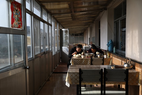 11月6日下午两点,甘肃省山丹服务区,他俩吃花卷和羊肉白菜汤,这是抵达目的地前最后一次正餐。