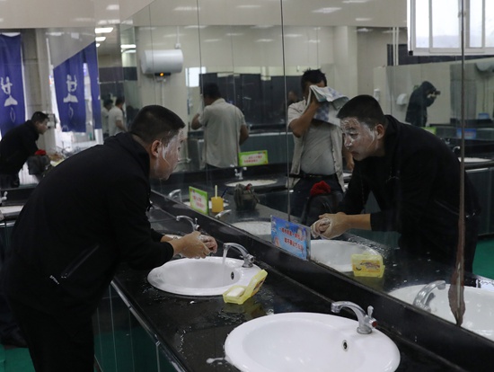 11月5日早上8点,陕西省丹凤服务区,孔令玉在洗手间洗脸。