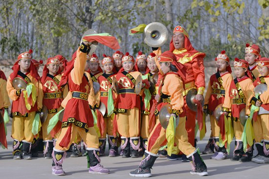 11月21日,河北省邢台市桥东区长信小学学生张榆茉(右)、张可欣(左)练习打钹。 今年以来,河北省邢台市桥东区长信小学将当地民间音乐“长信排鼓”引入校园,开设校本课程,聘请民间艺人为学生授课,在丰富校园文化生活的同时,传承和弘扬中国传统文化。2007年6月,“长信排鼓”被河北省列为省级非物质文化遗产。陈雷/摄(新华社发)