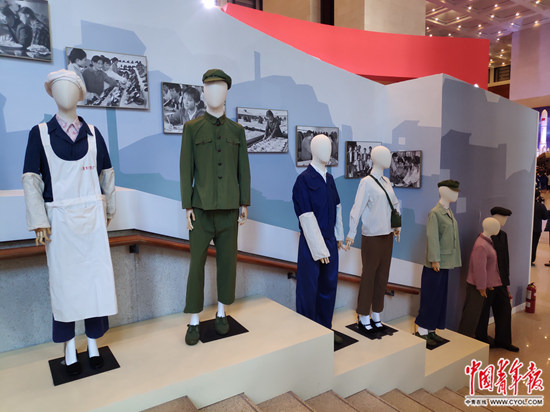 展区由北京服装学院师生团队承担策划执行工作。北京服装学院服装与艺术工程学院副院长杨洁介绍,改革开放之前,人们着装比较简单,款式基本上是中山装、军便装、人民装、两用衫的天下,色彩主要是蓝、绿、灰“老三色”。