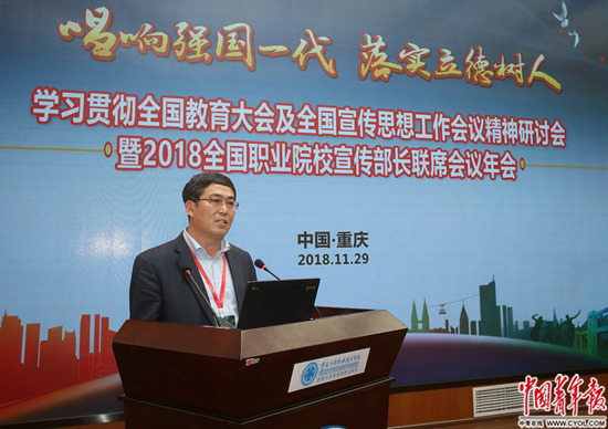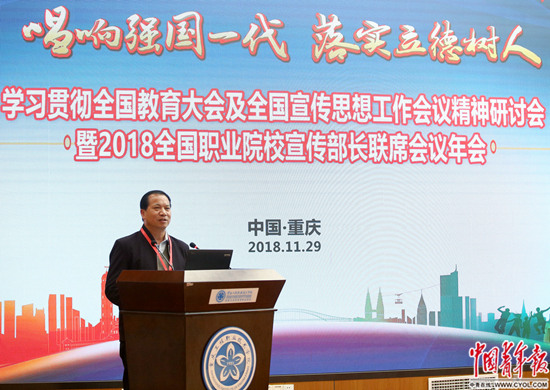 11月29日,学习贯彻全国教育大会及全国宣传思想工作会议精神研讨会暨2018全国职业院校宣传部长联席会议年会在重庆召开。