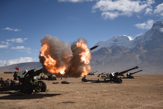 近日,西藏军区某炮兵旅在海拔4600米的高原演训场,组织加榴炮分队利用多种弹种、多种引信,从单兵炮手到炮兵群体,采用多种打击手段,对不同类型的目标进行为期5天的实弹射击考核,检验了炮兵在恶劣环境下的作战能力。