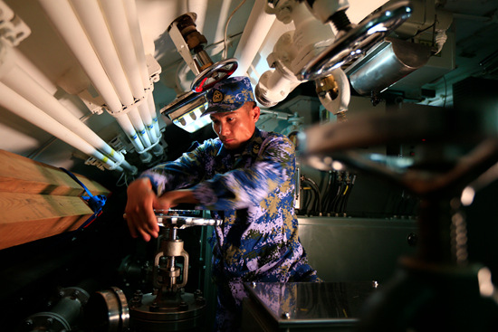 艇上去年刚刚参军的大学生士兵焦新宇也经常听肖海生说,“要把每一根管道摸透,像熟悉自己那样熟悉AIP系统。”在转入AIP专业之前,焦新宇就知道肖海生的大名。听说自己要成为这位“AIP第一人”的徒弟时,焦新宇既兴奋又紧张,但很快他就发现根本没有时间兴奋,因为“要学习的东西实在太多了”。