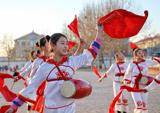 河北省唐山市丰润区东马庄小学舞蹈社团学生在练习腰鼓舞(12月18日摄)。近年来,丰润区教育部门把社团活动作为创新和深化未成年人思想道德和身心健康建设的重要途径,在全区中小学相继组建了陶艺、书画、舞蹈、皮影、足球等各种社团1000余个,让孩子们在推进素质教育的过程中快乐成长。新华社记者 牟宇/摄