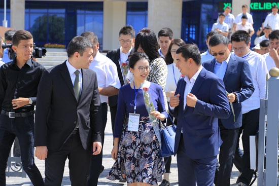 柳茜(前排中)率Hi China国际青年发展联盟、世界青年发展论坛主席访问团来到乌兹别克斯坦费尔干纳州。柳茜/供图
