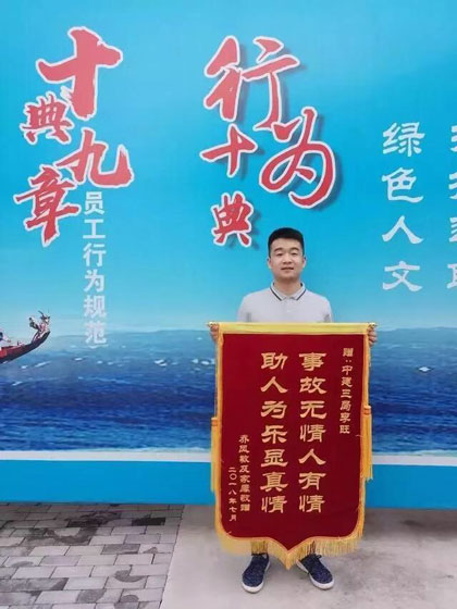 直到过了两个月后,伤者家人辗转找到李旺所在公司——中建三局的项目工地,送来锦旗表达感谢,同事们才知道这档子事儿。