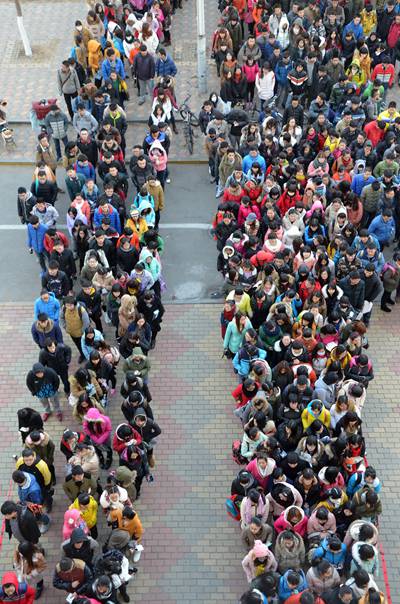 2014年12月20日,大学英语四、六级开考。在山东聊城大学考试点,大学生正在排队进场。(资料图片)视觉中国供图
