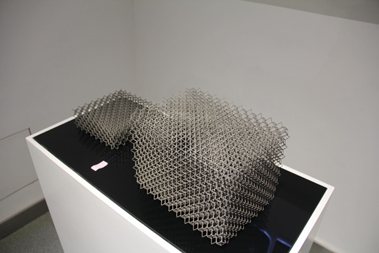 利用金属3D打印技术打印出的钛合金镂空点阵结构。李晨/摄