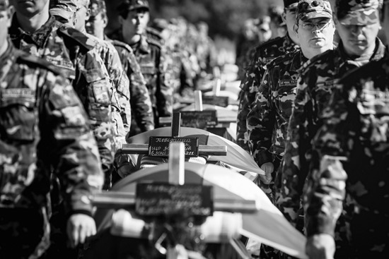乌克兰扎波罗热的一场集体葬礼。下葬的都是在东部冲突中阵亡后无法确定身份的士兵。视觉中国供图