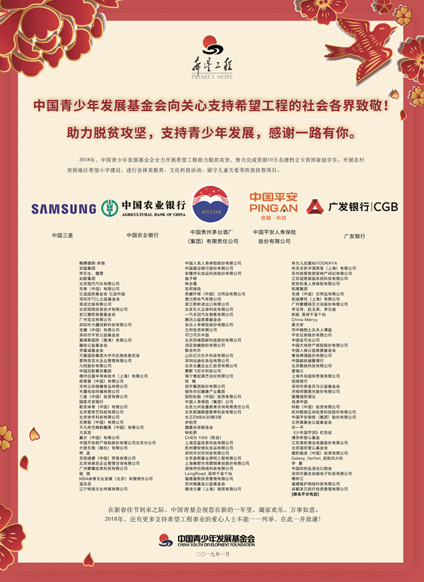 中国青少年发展基金会向关心支持希望工程的社会各界致敬!