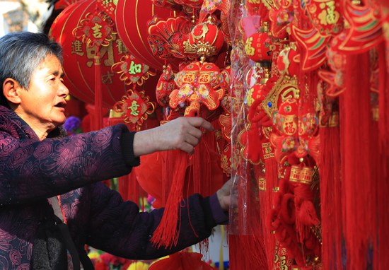 1月27日,市民在安徽黄山市歙县徽州古城年货集市上选购春节饰品。视觉中国供图