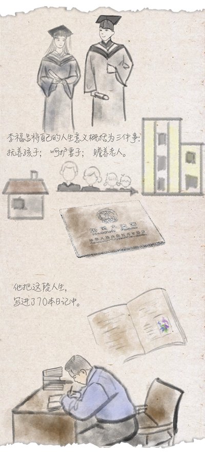 两个孩子都变得懂事,考上大学、研究生,找到很棒的工作,李福昌生活的重心又倾向赡养老人,“尽孝要趁早”。强烈的感受最早来源于老丈人的离世,他在日记里写: