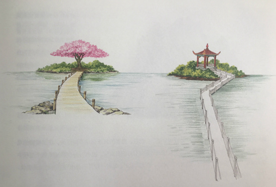 这一点,给韩启德院士留下了深刻的印象。书中近200幅图画并不是简单的插图,而是体现医学逻辑的精妙绘画,其创意均来自宋刚。例如,在《“尿圈”细菌通缉令》分册中,将男性和女性的尿道绘制成通往湖心岛的桥,男性之桥细而长,女性之桥宽且短,具有中国风的唯美图画生动形象地展现了不同性别尿道解剖结构的特征,比直接使用医学解剖图具有更好的科普传播效果。