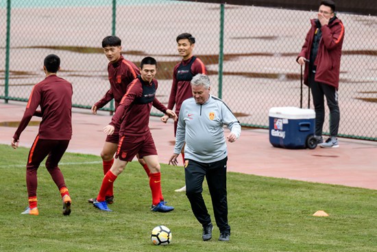 2018年11月18日,希丁克带领U21国足在重庆备战国际邀请赛。视觉中国供图