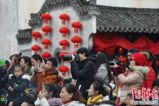 安徽省乡村春晚演出现场呈坎村,众多乡民和游客齐聚同乐。中国青年报·中青在线记者 李建泉/摄