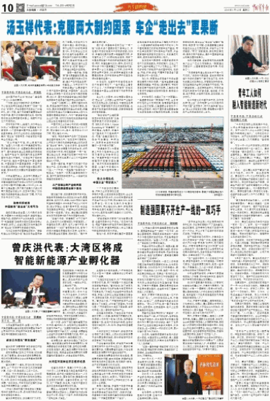 曾庆洪代表:大湾区将成智能新能源产业孵化器