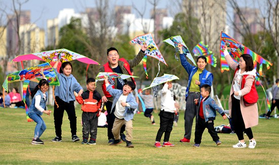 3月16日,人们在安徽省合肥市庐州公园放风筝。葛传红/摄(新华社发)