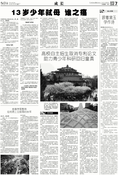 高校自主招生取消专利论文 助力青少年科研回归童真