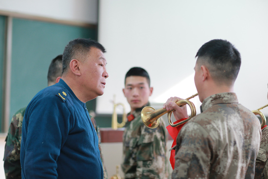 解放军军乐团万千里与左刚共同负责军号演奏课教学,在他看来,比外在条件更重要的,是学员们高涨的学习热情。“他们能够感受到军号背后的意义,那些红色精神,所以才会主动去学。”