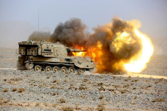 4月中旬,西北大漠风沙肆虐。随着一声声震天巨响,某新型火炮群烈焰出膛,数十枚炮弹直击靶标……新疆军区某炮兵团实装实弹演练激战正酣。