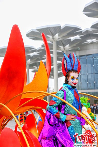 世园会国际馆前广场,国际风采嘉年华活动上的表演者。