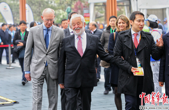 国际展览局秘书长洛塞泰斯(中)在世园会开园式上。