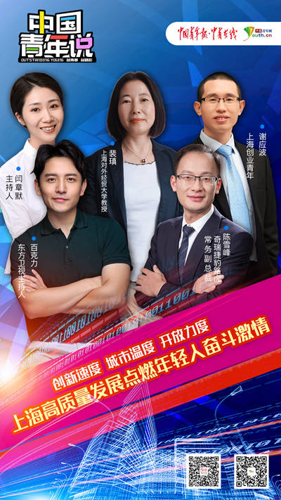 在中国青年报社强力打造的谈话类视频节目“中国青年说”中,上海对外经贸大学教授裴瑱,奇瑞捷豹路虎常务副总裁陈雪峰,东方卫视主持人、演员百克力,上海创业青年谢应波4位嘉宾畅谈自己在上海生活的经历,共话对上海高质量发展的深切感受。