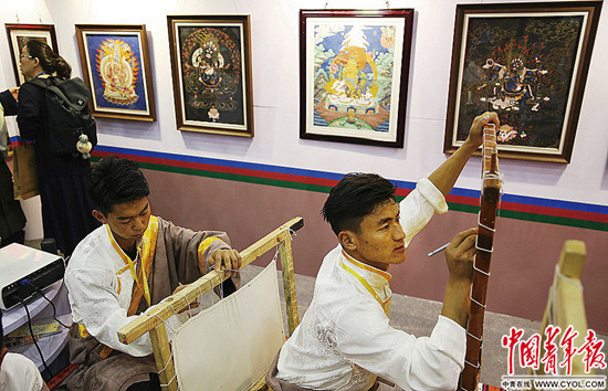 “已经毕业了两届学生,加上现在在学校就读的,一共有来自西藏各个地方的139名孩子在这里学习唐卡绘画技艺。”近日,全国第六届中小学生艺术展演活动在江苏省苏州市举行,在同时举行的学生艺术实践工作坊上,来自西藏自治区拉萨市第二中等职业技术学校的边巴次仁老师热情地向中国青年报·中青在线记者介绍着身边几名正在专心作画的学生。