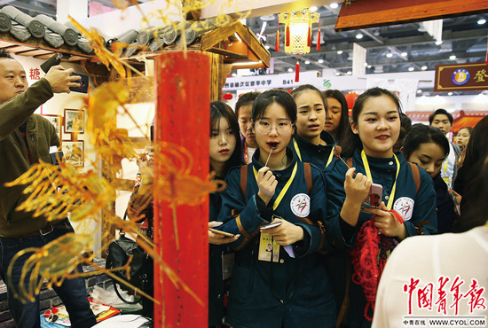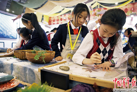 来自北京的“毛猴”、来自贵州的扎染、来自苏州的纸扇……全国的53个学生艺术实践工作坊一起在苏州亮相,分为“彩梦编染”“扶陶塑形”“墨香书画”“创意空间”“乡情乡韵”“艺境通达”六大板块,呈现了众多具有地域特征、民族特色和教育特点的优秀传统项目。