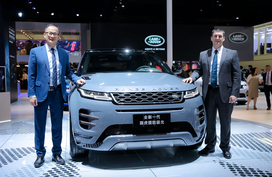 奇瑞捷豹路虎总裁戴慕瑞(右)与奇瑞捷豹路虎常务副总裁陈雪峰在全新一代路虎揽胜极光前合影。