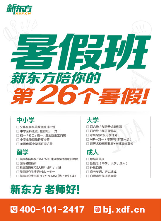暑假班 新东方陪你的第26个暑假!