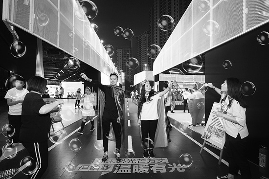 5月31日,在青岛CBD万达,由于正逢六一儿童节,体彩在现场准备了各种丰富的道具,为前来参与的观众提供了“重返童年”的惊喜;同时,还有“魔法杖”惊喜“现身”,“变”出了一串串五彩斑斓的泡泡,将现场妆点成一方缤纷的童话梦境。