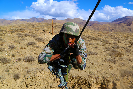 近日,西藏山南军分区某边防团一支侦察小分队挺进海拔落差2000多米的陌生地域,展开多课目、高强度、针对性的强化训练。该团副团长刘兴军介绍,此次集训主要针对侦察兵心理素质、单兵战术、极限体能、侦察器材使用,以及侦察兵战术协同配合展开强化训练,结合高原边防环境特点,瞄准未来对手、紧贴实战背景,摔打锤炼侦察兵在高寒缺氧环境下的战斗能力。图为牵引横越训练。李国涛 孙梁 冯啸/文并摄