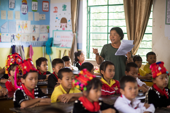 老师董木兰在给学生们上课。 新华社记者 秦晴/摄