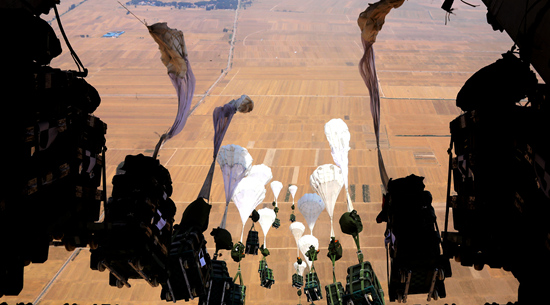 6月24日,空降兵某旅组织多场次、高风险、高强度小件空投训练,重点对随队空投、持续支援、远距离空投等课目进行专攻细训,探索装备极限性能,提升部队战场远程保障能力。图为空投件快速离机。 文图、视频:李志伟 肖艳飞